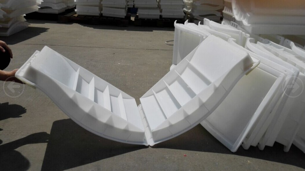專注于國家農業水利建設的水泥溝渠模具,主要樣式以蝶形設計,猶如展翅的蝴蝶而得名,采用PP聚丙烯材料注塑而成。此款二件套排水溝模具主要以2個相同圓弧拱形模塊組成,水泥排水溝成品呈小半圓形狀。