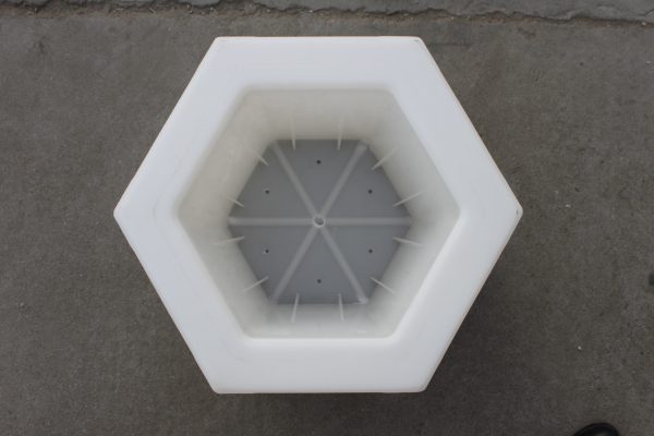 應用極為廣泛的一款護坡模具,按照其實際設計及樣式,歸類為空心六角護坡磚塑料模具。加工原料采用全新聚丙烯塑料原料,已保證使用此空心六角護坡模具澆筑水泥護坡磚時成品質量越佳,脫模更易。