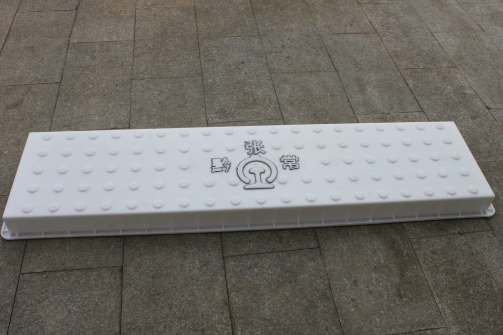 黔張常鐵路起始于重慶市黔江區,途徑湖南張家界終點至常德市武陵區,總長度為340公里,可見所需鐵路蓋板塑料模具的用量極大。此款黔張常鐵路蓋板塑料模具主要是以圓點防滑設計,在塑料模具中心位置印有黔張常字樣及鐵路專用圖標,長度158CM,因其長度突出,特別在鐵路蓋板塑料模具四周鑲嵌加強筋保證其結構牢度,在實際施工中還是得注意。
