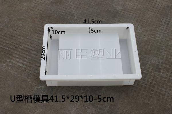 此類水泥急流槽或者流水槽模具多半樣式以U型結構,所以很多地方也會稱其為U型槽模具。直觀這個水泥流水槽模具的高度來看,砼制品成品也有5個厘米,比較常規,相信不會用于急流區域。