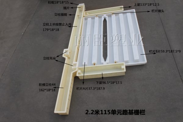 針對不同施工要求,除此2.2米115單元的路基柵欄塑料模具之外,麗臣秉借多年客戶需求積累,也相應提供2.2米159單元、2.2米300單元、1.8米159單元、1.8米3單元、1.8米115單元等一系列塑料路基柵欄模具,歡迎垂詢。