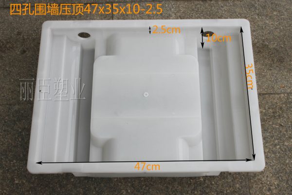 圍墻四孔壓頂模具在注塑用料上采用聚丙烯塑料為主要生產(chǎn)原料,其模具的尺寸為47x35x10-2.5,毛面主要以長(zhǎng)方形為主,對(duì)模具進(jìn)行脫模過(guò)程中,脫模夾的使用要求不高,且壓頂模具的性能優(yōu)越獲得了廣大用戶的追捧。