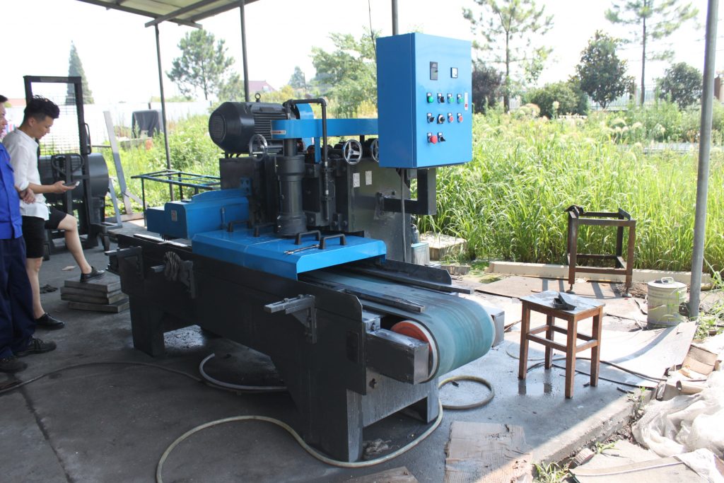 制作這臺(tái)多功能成型機(jī)的技術(shù)員在對(duì)這臺(tái)機(jī)器出廠前進(jìn)行了最后一步的調(diào)試,將澆筑成型的水泥磚放置輸送帶上,成型機(jī)入口處與出口處都有配置供水系統(tǒng),防止在制作過(guò)程中塵土飛揚(yáng),能對(duì)水泥制品打磨過(guò)程中其表面更為整潔統(tǒng)一。經(jīng)過(guò)平磨系統(tǒng)對(duì)水泥模具澆筑成型的水泥制品進(jìn)行磨形,后進(jìn)入第二系統(tǒng)對(duì)水泥磚塊制品就進(jìn)行拉條紋,這款多功能側(cè)石二工位條紋成型機(jī)打磨成型的條紋彩磚的外觀以34條紋為主。打磨成型后在有輸送帶將水泥磚運(yùn)輸出來(lái)。其使用過(guò)程中為防止施工過(guò)程中的安全事故的發(fā)生,通過(guò)使用電控箱的方式來(lái)對(duì)機(jī)器進(jìn)行急停控制。