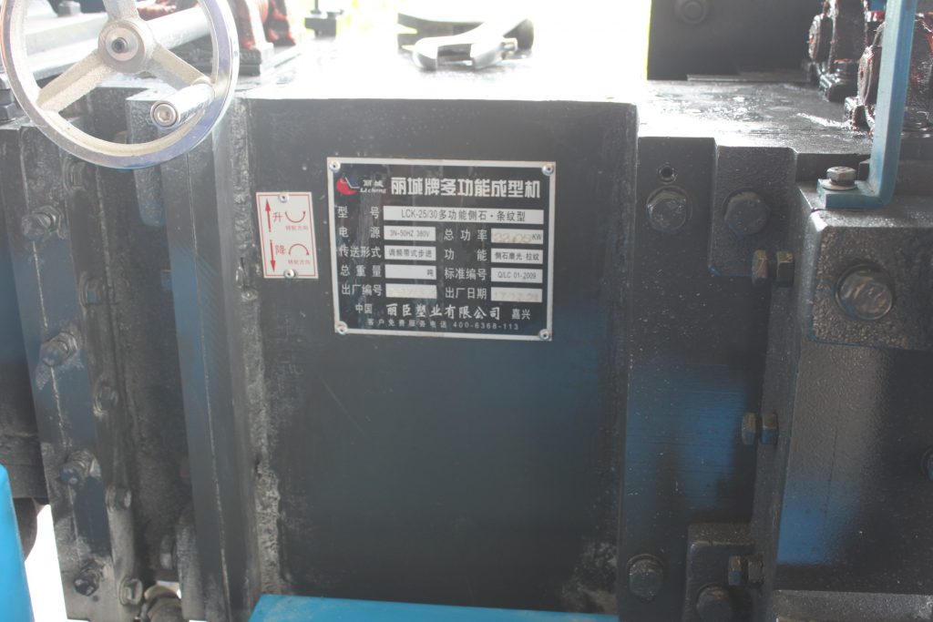 這款LCK-25/30多功能側(cè)石二工位條紋成型機(jī),其主要功能是對(duì)澆筑成型的水泥模具進(jìn)行二次加工成型,其機(jī)器總功率為22.05KW,其傳送形式為調(diào)頻帶式步進(jìn),電源使用的標(biāo)準(zhǔn)為3N-50HZ 380V。