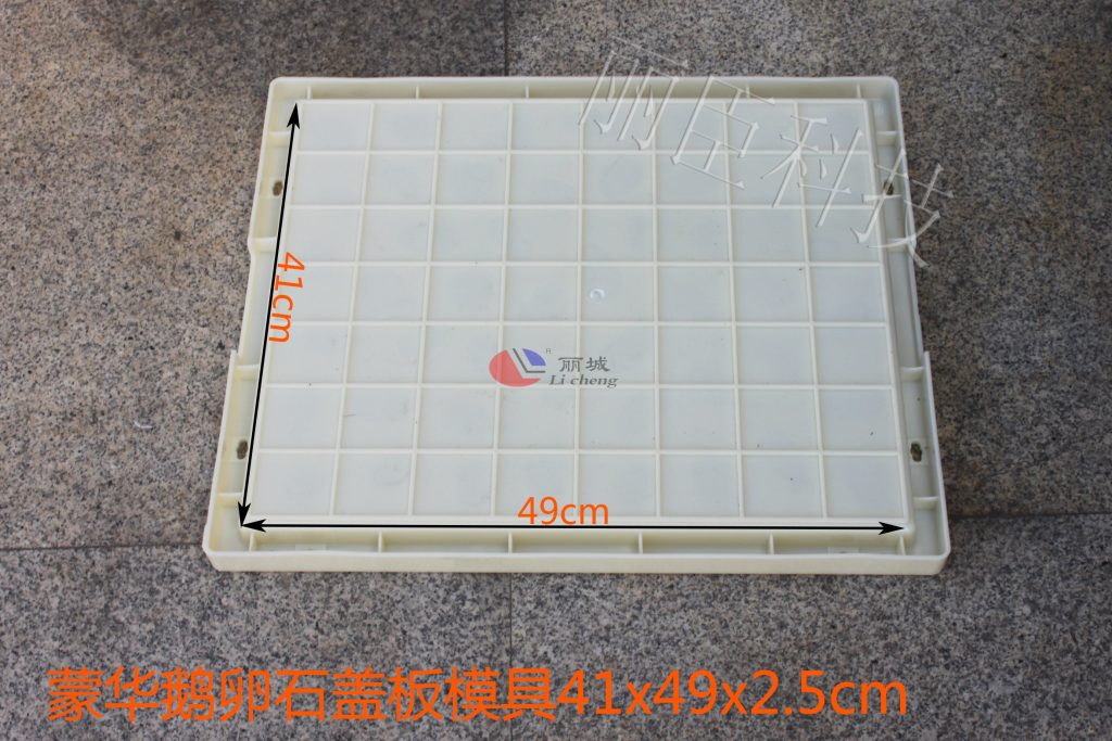 麗臣制作的蒙華鵝卵石蓋板塑料模具在規(guī)格上,除了41x49x2.5cm外還有49×48.5×2.5、54.5x41x2.5多種規(guī)格完全滿足客戶在對塑料模具上的需求,且這款蒙華鵝卵石蓋板混凝土在澆筑過程中是以RPC蓋板為設計外形,從而以達到薄承受更重為目標。