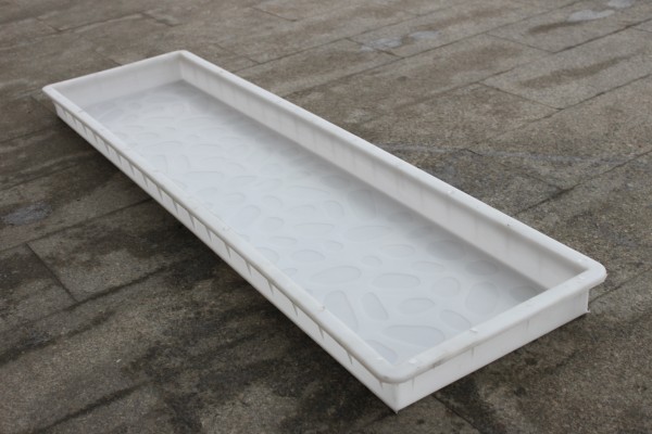 長條高速蓋板模具主要設(shè)計(jì)結(jié)構(gòu)為鵝卵石凹凸印制,模具側(cè)部分別添加加強(qiáng)筋以保證不易變形及水泥制品脫模次數(shù)。在實(shí)際水泥制品生產(chǎn)過程中,填料,干透,再使用水泥基建設(shè)專用震動(dòng)平臺(tái)脫模,高速蓋板成品鵝卵石凹凸有致,減少路面防滑等產(chǎn)生不必要的危險(xiǎn)因素。根據(jù)高速蓋板模具的實(shí)際尺寸,在水泥蓋板澆筑過程中,亦可適當(dāng)添加一些鍍銅鋼纖維來增加高速蓋板的整體結(jié)構(gòu)牢固度。