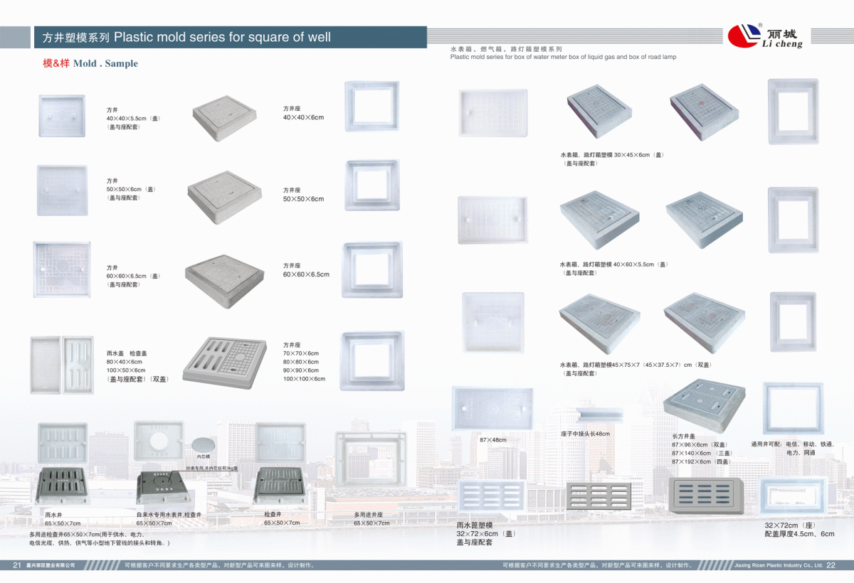 20-21:方井檢查井蓋系列 ? ? ? ? ? ? ? ? ? ? ? ? ? ? ? ? ? ? ? ? ? ? ? ? ? ? ? ? ? ? ? ? ? ? ? ? ? ? ? ? ?22:水表箱、路燈箱、燃?xì)庀?a href="http://m.nmradiology.cn/">塑料模具系列