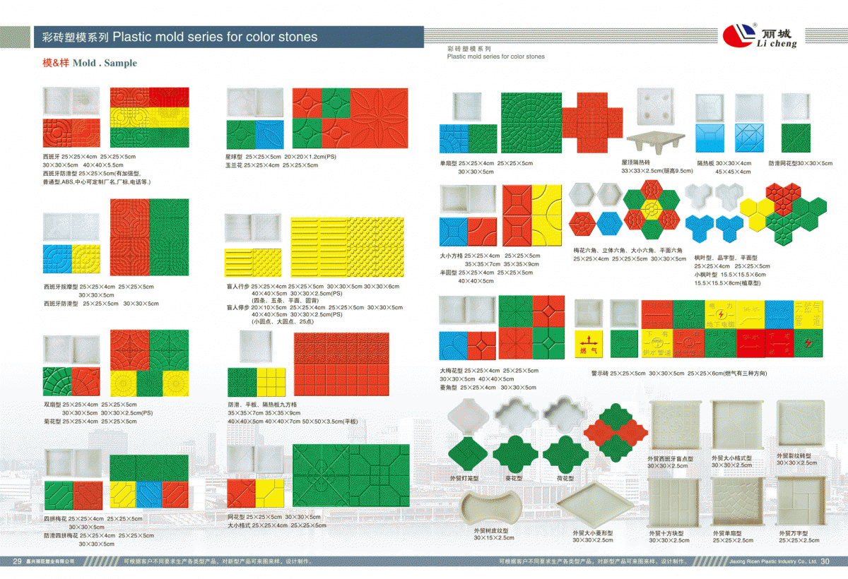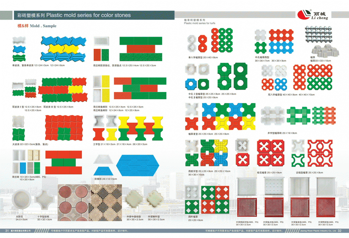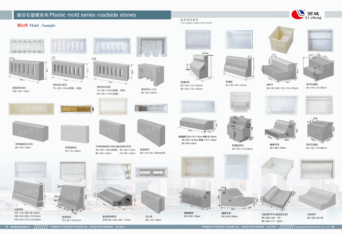 麗臣塑業(yè)主營產(chǎn)品:現(xiàn)澆塑料模板,六角護坡模具、高鐵水泥護欄模具、溝蓋板模具、路沿石模具、彩磚模具、井蓋模具等一系列水泥制品塑料、鋼模具及配套的機械設(shè)備配件等,如條紋磚條紋機、脫模機、高鐵護欄離心機、加料機等。